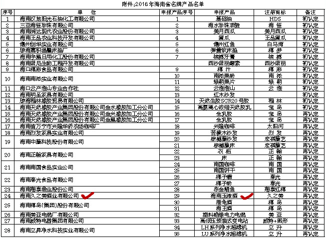 附件:2016年海南省名牌產(chǎn)品名單