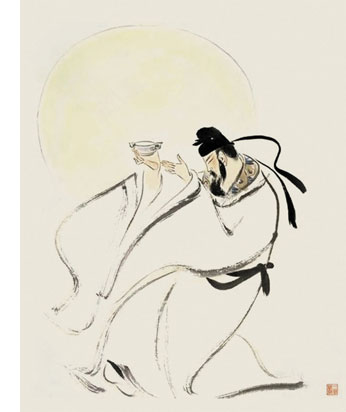 “李白一斗詩百篇,長(zhǎng)安市上酒家眠,天子呼來不上船,自稱臣是酒中仙?!保ǘ鸥Α讹嬛邪讼筛琛罚白砝飶臑榭?,詩成覺有神?!保ǘ鸥Α丢?dú)酌成詩》)“俯仰各有態(tài),得酒詩自成?!保ㄌK軾《和陶淵明〈飲酒〉》)“一杯未盡詩已成,涌詩向天天亦驚?!保钊f里《重九后二月登萬花川谷月下傳觴》)。南宋政治詩人張?jiān)暾f:“雨后飛花知底數(shù),醉來贏得自由身。”酒醉而成傳世詩作,這樣的例子在中國詩史中俯拾皆是。 不僅為詩如是,在繪畫和中國文化特有的藝術(shù)書法中,酒神的精靈更是活潑萬端。畫家中,鄭板橋的字畫不能輕易得到,于是求者拿狗肉與美酒款待,在鄭板橋的醉意中求字畫者即可如愿。鄭板橋也知道求畫者的把戲,但他耐不住美酒狗肉的誘惑,只好寫詩自嘲:“看月不妨人去盡,對(duì)月只恨酒來遲。笑他縑素求書輩,又要先生爛醉時(shí)?!薄皡菐М?dāng)風(fēng)”的畫圣吳道子,作畫前必酣飲大醉方可動(dòng)筆,醉后為畫,揮毫立就?!霸募摇敝械狞S公望也是“酒不醉,不能畫”。“書圣”王羲之醉時(shí)揮毫而作《蘭亭序》,“遒媚勁健,絕代所無”,而至酒醒時(shí)“更書數(shù)十本,終不能及之”。李白寫醉僧懷素:“吾師醉后依胡床,須臾掃盡數(shù)千張。飄飛驟雨驚颯颯,落花飛雪何茫茫?!睉阉鼐谱頋娔搅羝渖窆斫泽@的《自敘帖》。草圣張旭“每大醉,呼叫狂走,乃下筆”,于是有其“揮毫落紙如云煙”的《古詩四帖》。 |